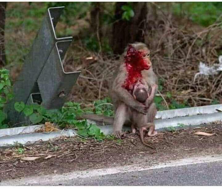تصویر میمونی که بدست شکارچیان هدف شلیک قرار می گیرد و پیش از مردن به بچه اش برای آخرین بار شیر میدهد !
