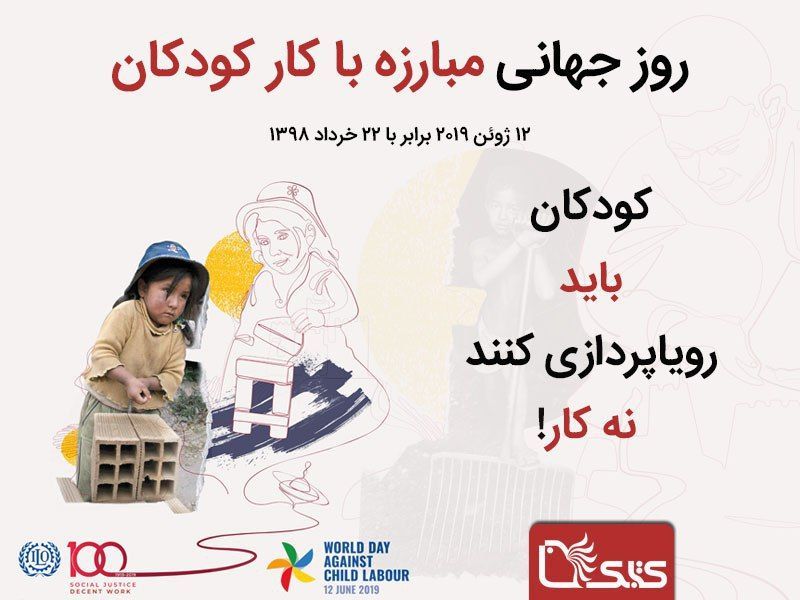 🔻شعار روز جهانی مبارزه با کار کودکان ۲۰۱۹ «کودکان باید رویاپردازی کنند نه کار» انتخاب شده است. براساس تازهترین آمار در حال حاضر هنوز ۱۵۲ میلیون کودک کار وجود دارد و از هر ۱۰ کودک کار ۷ کودک در حوزه کشاورزی کار میکنند.