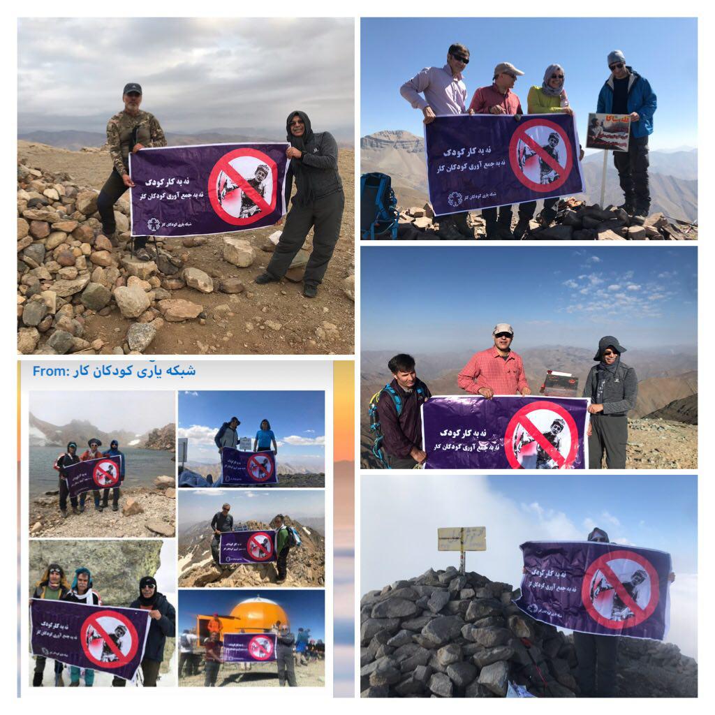 نه قله ایران در مرداد و شهریور امسال ، پذیرای شعار نه به کار کودک و نه به جمع آوری کودکان کار بود