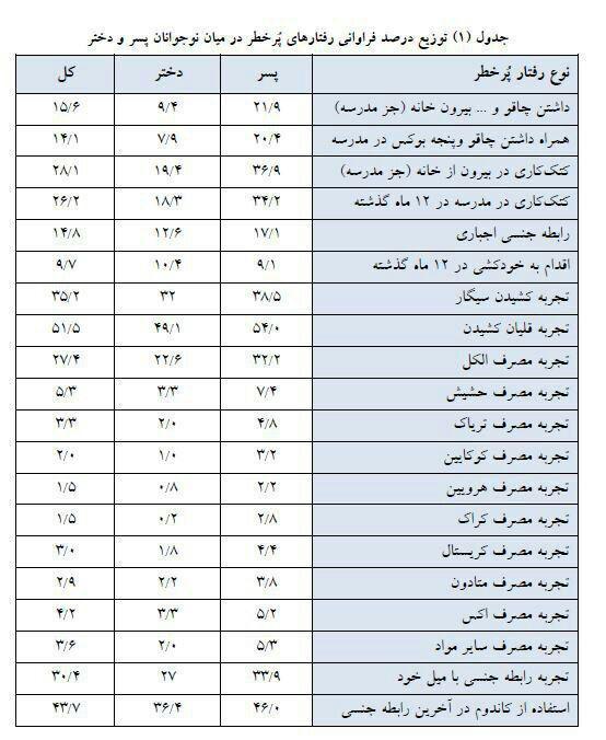 آمار تکاندهنده #رفتارهای_پرخطر در مدارس تهران