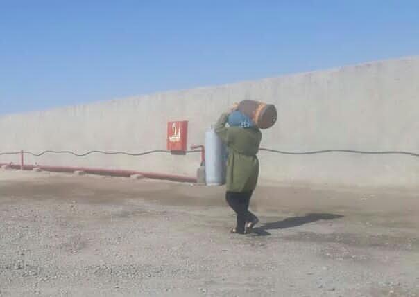 📸حمل و به دوش کشیدن کپسول گاز توسط بانوی بلوچ