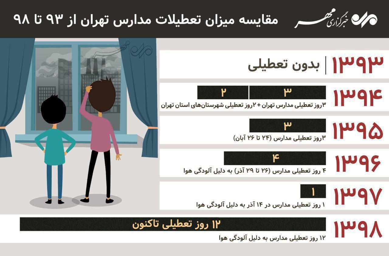 ♦️مقایسه میزان تعطیلات مدارس تهران از سال ۹۳ تا ۹۸
