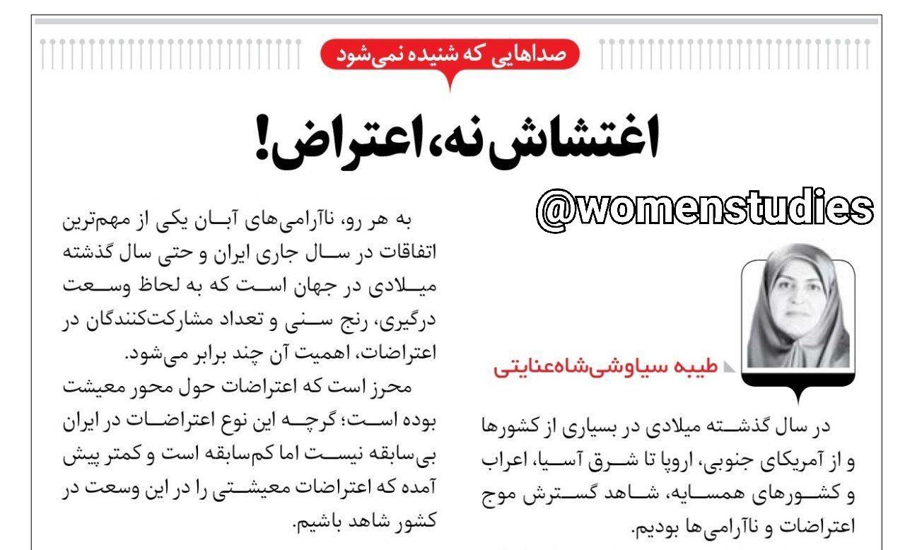در سال گذشتهی میلادی، در بسیاری از کشورها و از امریکای جنوبی، اروپا تا شرق آسیا، اعراب و کشورهای همسایه، شاهد گسترش موج اعتراضات و ناآرامیها بودیم. در برخی از این کشورها، این اعتراضات بهعنوان یک حق شهروندی پذیرفته شد و در برخی دیگر از کشورها، با شدت عمل، برخورد نظامی و سرکوب شد و خسارات مالی و جانی زیادی در پی داشت. بهعنوانمثال اعتراضات کشور فرانسه، ماههاست که ادامه دارد و به یک سال نزدیک شده است اما در کشور ما، طی چند روز اعتراضات معیشتی سرکوب و بهزعم برخی، «جمع شد»!