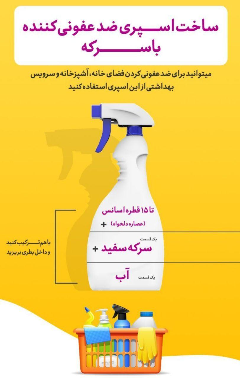 🔸برای مقابله با کرونا میتونین خیلی راحت اسپری ضدعفونی کننده خونگی بسازین.